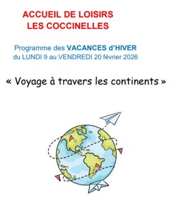 ACCUEIL DE LOISIRS LES COCCINELLES Vacances d'Hiver du lundi 9 au vendredi 20 février 2026 "Voyage à travers les continents"