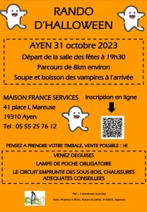 Après le succès de la première édition de la rando d'Halloween en 2022, l'association PBC réitère l'événement mardi 31 octobre à 19h30. Rendez-vous à la salle des fêtes d'Ayen.